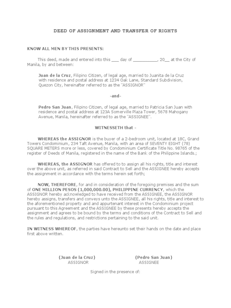 Deed of pledge and assignment. A reservation operates at law whether or not the purchaser executed the deed of assignment out of which the reservation is created. The deed of assignment is just one of the many legal documents you need to sign if you're buying or selling a property. (the assignor) and aironet wireless communications, inc. Should the general meeting pass any changes or additions to the deed of assignment in the future, which for reasons of collective administration of.