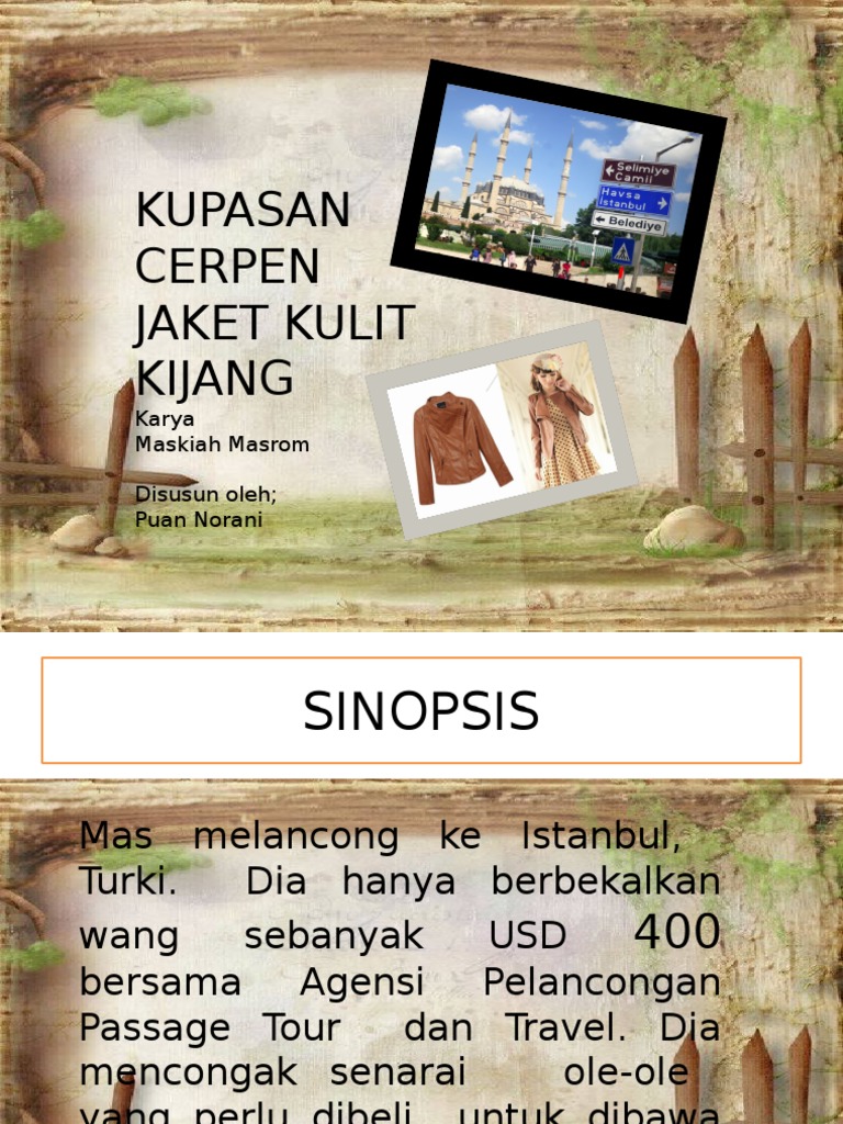 Cerpen Ibu Dan Ceper from img.dokumen.tips Apr 11, 2016 · sinopsis cerpen jaket kulit kijang dari istanbul sinopsis m en g isa h k a n 'ak u ' m e la n c o n g ke ne g a ra t u rki s a m b il m en c a ri c e n de ra h a ti un t u k d ib a w a pu l an g ke m a la y sia. Pekedai tanpa putus asa memujuk aku agar membeli jaket kulit kijang, namun aku masih belum berniat untuk mencari pengganti jaket kain yang telah lama berkhidmat kepadanya. Cerpen jaket kulit kijang dari istanbul. More images for persoalan jaket kulit kijang » Sikap peniaga yang tidak bertanggungjawab. Dec 10, 2017 · persoalan cerpen jaket kulit kijang dari istanbul. Feb 26, 2018 · contoh : Ahli rombongan dibenarkan pergi membeli belah di grand bazaar yang terletak lebih kurang satu kilometer dari tempat penginapannya di hotel senator.